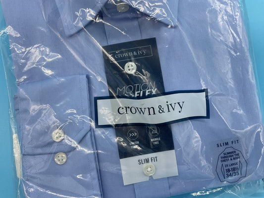 Crown & Ivy Men’s Slim Fit Stretch Long Sleeve Dress Shirt - 18 1/2” 34/35 2XL