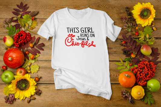 This girl runs on Jesus & Chic-fil-a Crew Neck T-Shirt