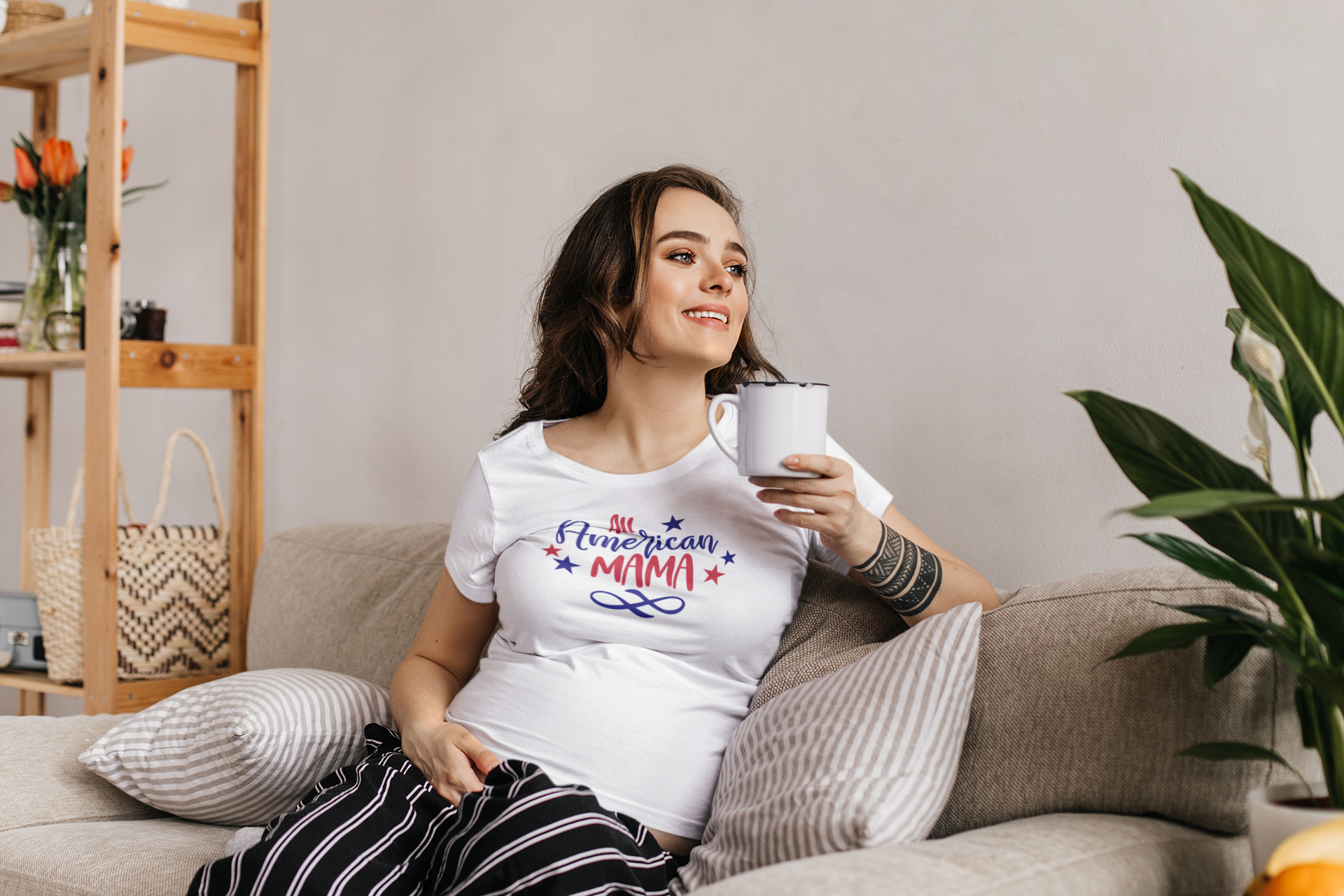 All American Mama 4th of July Crew neck T-Shirt Style #2