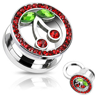 A 9/16" - 316L Surgical Stainless Steel Tunnel with a CZ Cherry design.