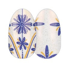 Take a walk through Marrakech with Stay a Tile, a stunningly detailed, shimmery blue and gold design inspired by painted tiles.
