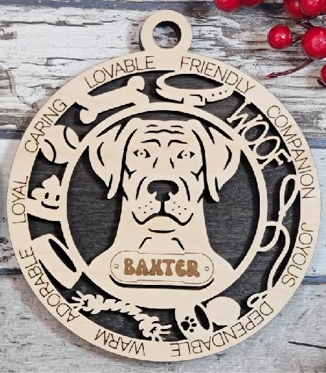 Laser cut and hand assembled custom ornaments. Choose the name as well as the background colors of the ornament. Backing pieces will be made from color acrylic, front will be made from wood. These make a great custom gift and look great on the Christmas tree. Many other styles available.