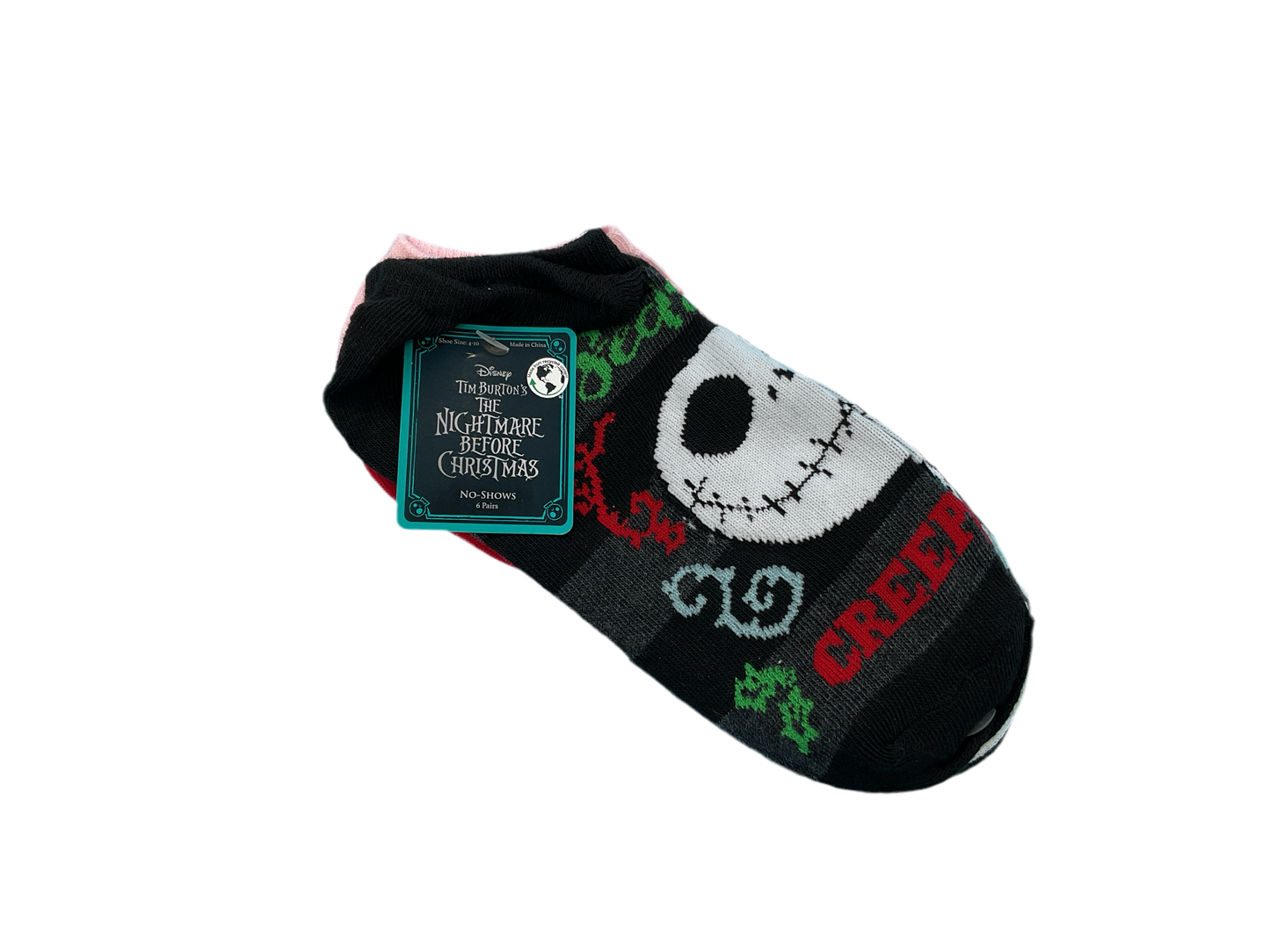 Upgrade your sock game with Disney's Nightmare Before Christmas No-Show Socks. Perfect for shoe sizes 4-10, this 6-pack features fun and spooky designs from the beloved movie. Comfortable, durable, and full of character, these socks will keep your feet happy all day long.