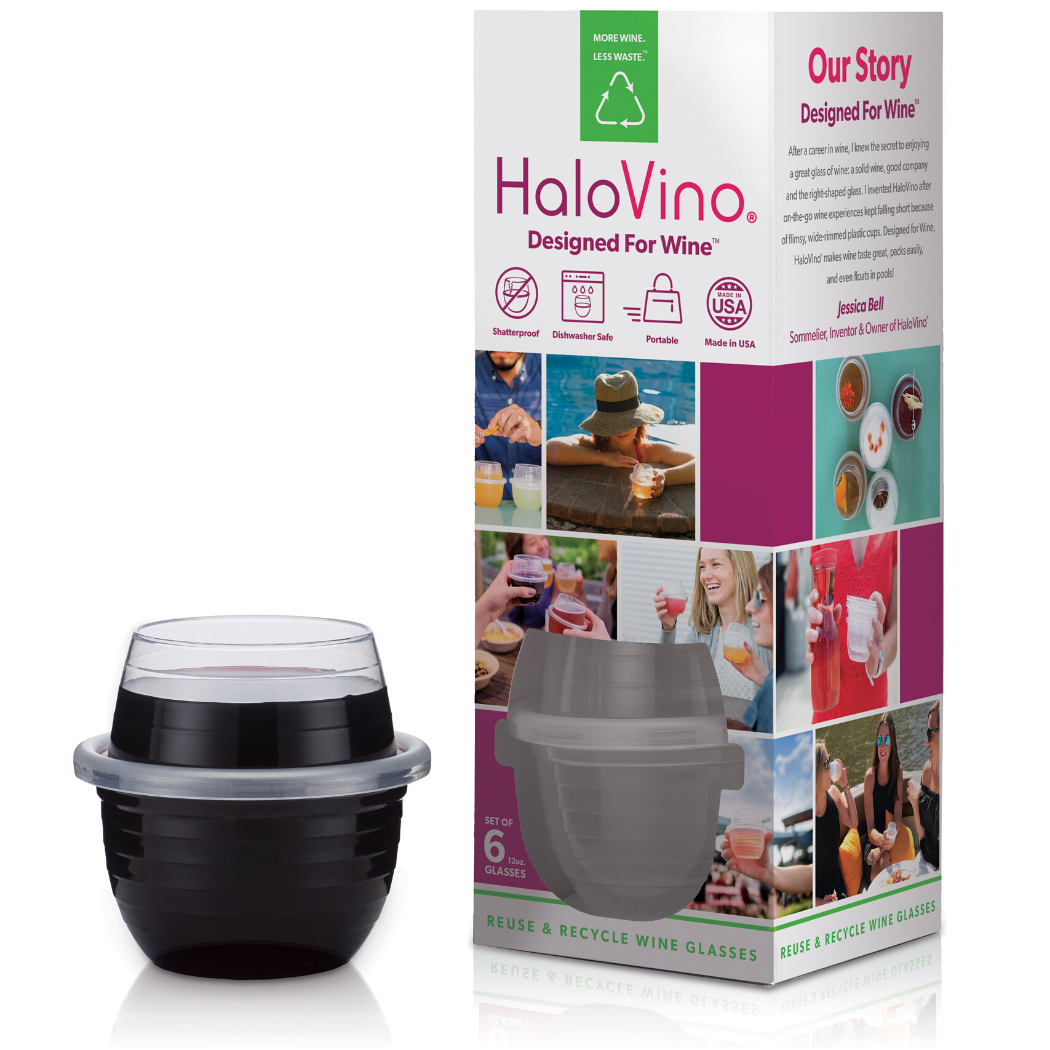 HaloVino is the first shatterproof, stackable, stemless wine glass to offer wine drinkers both cost and convenience without sacrificing on quality and experience. HaloVino was invented by a sommelier who knew traditional plastic cups were just not cutting it. HaloVino's narrow rim and wide body make wine taste better without spills and conveniently fit in cup holders. HaloVino wine tumblers are fully dishwasher-safe and recyclable. Made in the USA and BPA free. Perfect for outdoor enthusiasts.