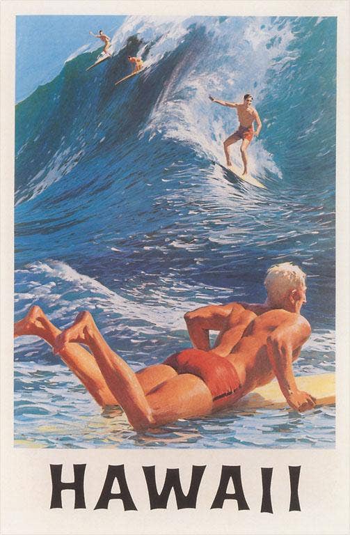 Riding the Big Waves, Hawaii - Vintage Image, Postcard