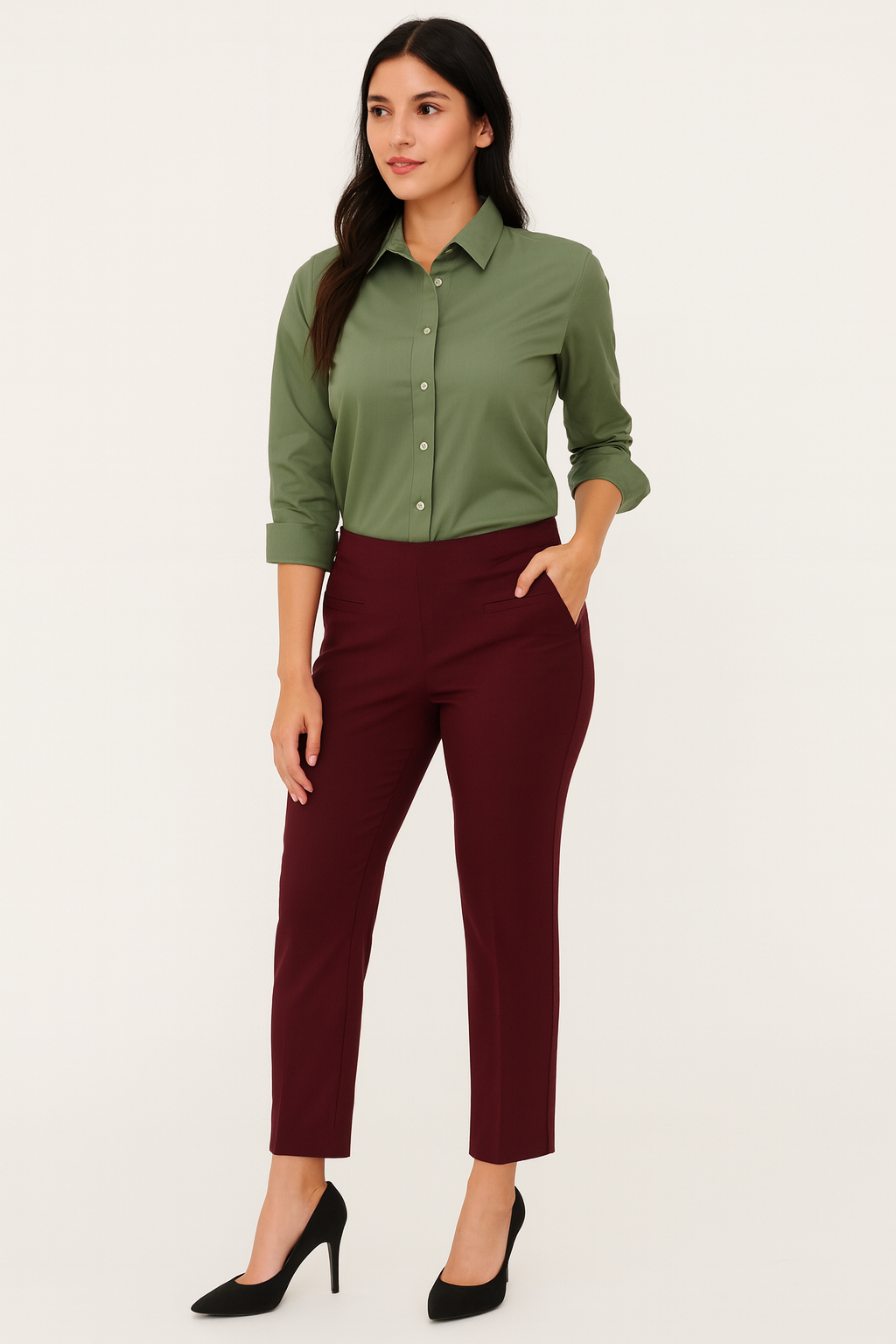 - Tailored ankle length for a clean, leg-lengthening line